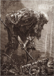 - John Bunyan was first the first to use the implement in a literary metaphor, noting in Pilgrim’s Progress that “The Man with the Muckrake could look no way but downward”—and that he consequently was unable to look up when offered a spiritual crown.
