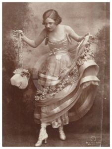 Over time, Lucile transformed Maison Lucile into the first successful international couture business, Lucile Ltd., with houses in London, New York, Chicago and Paris. Beginning in 1910, she wrote weekly columns for the Hearst newspapers and monthly columns for Harper’s Bazaar and Good Housekeeping. In addition to creating gowns for famous actresses, she designed costumes for theatrical productions, including the operetta The Merry Widow, several productions of the Ziegfeld Follies, and more than eighty movies. For a brief time she also had a successful mail-order business with Sears, Roebuck, offering a lower-priced, mass-produced line with her name.
